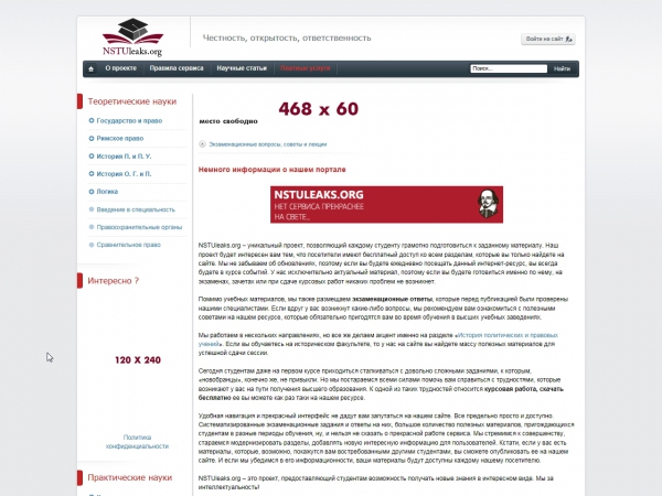 NSTUleaks.org (с англ. «NSTU» - НГТУ, и «leak» - утечка информации) – новое средство информирования студентов, имеющее ежедневные, актуальные обновления.
