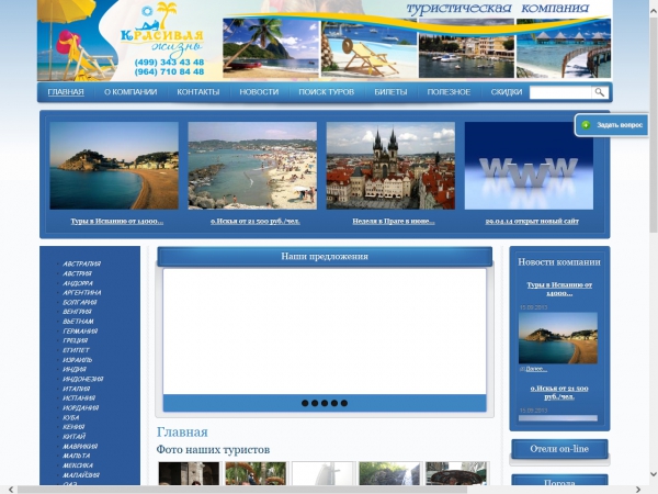 | Туристическая компания «Красивая Жизнь» это многопрофильное турагентство, сотрудники которого имеют значительный опыт работы по всем популярным туристическим направлениям. Основная цель нашей работы - предоставление Вам качественных и недорогих туристических услуг. Покупка тура это всегда индивидуальный заказ, и менеджеры нашей компании обеспечат максимальное соответствие деталей Вашего тура именно Вашим пожеланиям и ожиданиям. |