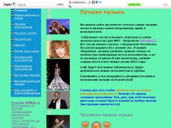 На нашем сайте вы можете скачать самые лучшие песни и музыку самых популярных групп и исполнителей. Собранные песни и музыка записаны в самом лучшем качестве для МР3 - битрейтом 320 кбит/с. Все песни можно скачать совершенно бесплатно, без регистрации и без всяких смс. В наших сборниках размер альбома зависит только от количества популярных песен исполнителя, а не от размера cd диска.В них включены, помимо старых песен и все новые песни 2012 года. audiobest.narod2.ru |