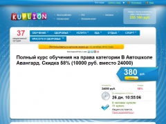 Kuplion – скидки в кафе, рестораны, салоны красоты, SPA, кино, боулинг и многое другое в вашем городе со скидкой от 50 до 90%. Ежедневно на Kuplion появляется уникальное предложение, по условиям которого Вы можете приобрести купон со скидкой от 50 до 90%. Каждый день — новые скидки! Возможно это купон на посещение кафе, ресторана, салона красоты, SPA, кино, боулинга и многое другое в вашем городе с большой скидкой. Приобретайте купоны для себя или в подарок, просто нажав на кнопку «Купить», и выбирайте удобный для Вас способ оплаты (банковской картой, электронными деньгами, через платежные терминалы и т.д.). kuplion.ru |